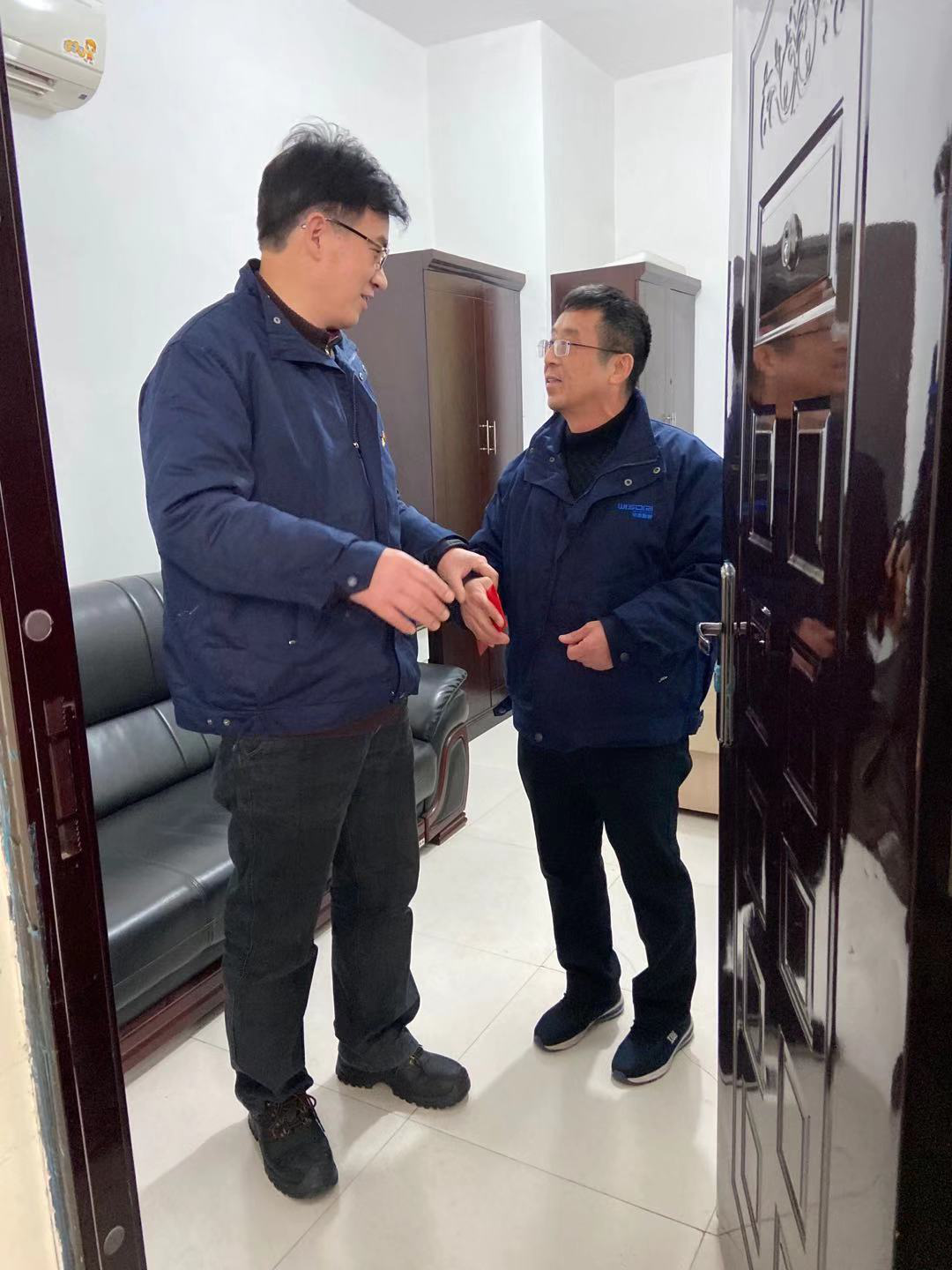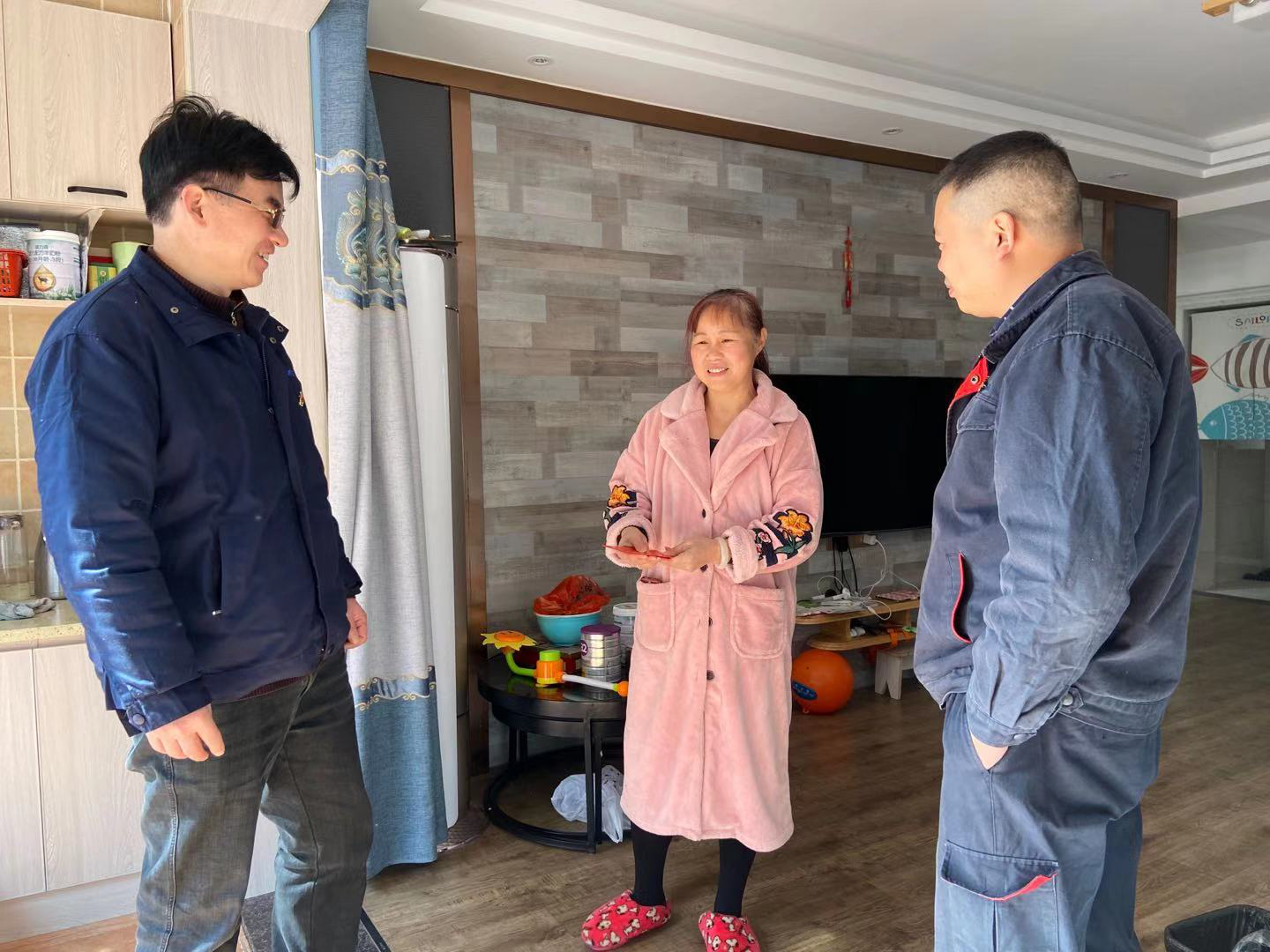 1月19日下午,在新春佳節即將來臨之際,公司黨委書記、董事長宋曉斌,工會主席李勇輝在有關人員的陪同下,來到大病職工吳小勇、周貴延以及工亡遺屬吳陽陽家中,為他們送上慰問金,并代表公司向他們致以新春的祝福和節日的問候。
