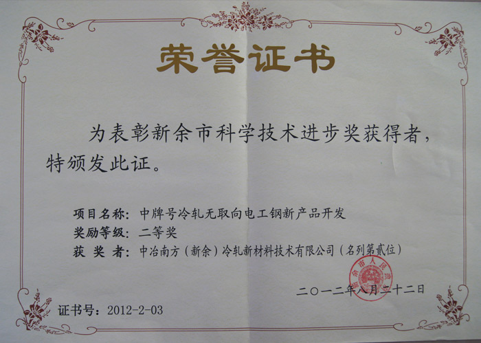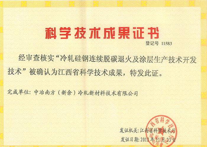 科學技術成果證書